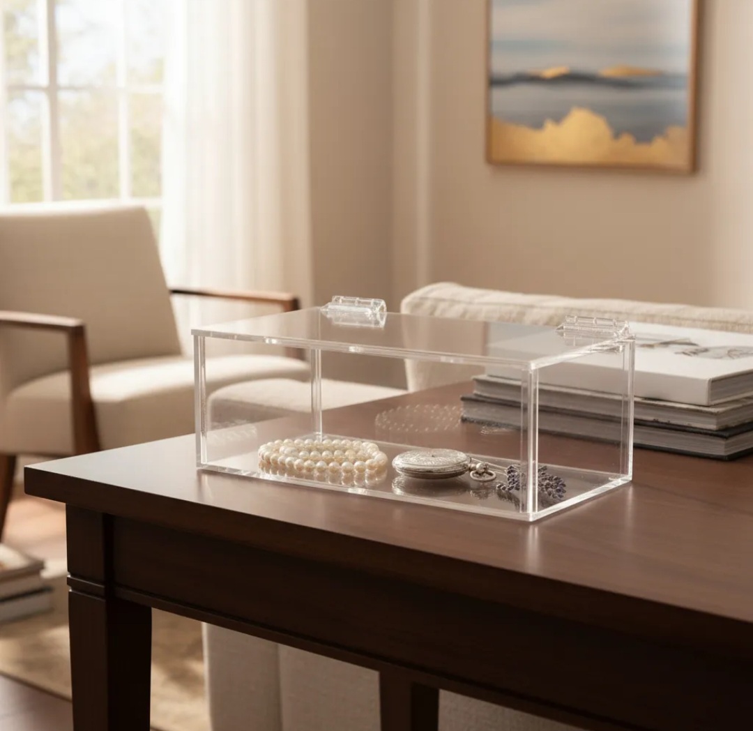 Feita em acrílico transparente de primeira qualidade, com 3mm de espessura, possui pés de silicone.