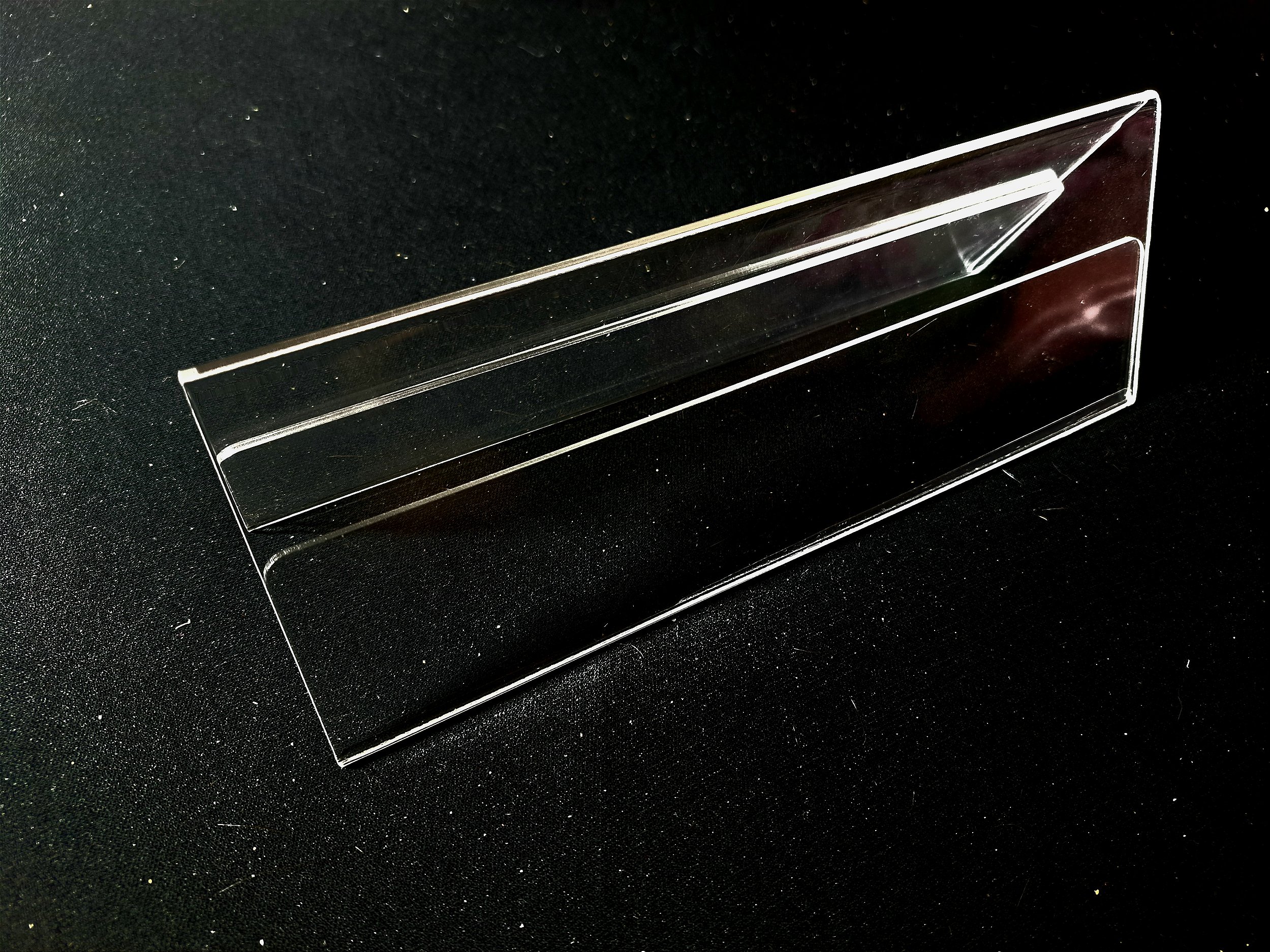 Fabricado em acrílico 3mm de alta qualidade, o display possui dimensoes de 21 cm de largura e 7,5 cm de altura, com uma profundidade de 6,2 cm. Ele conta com dois compartimentos, proporcionando versatilidade na apresentacao de folhetos, cardápios ou qualquer material impresso que voce desejar exibir.