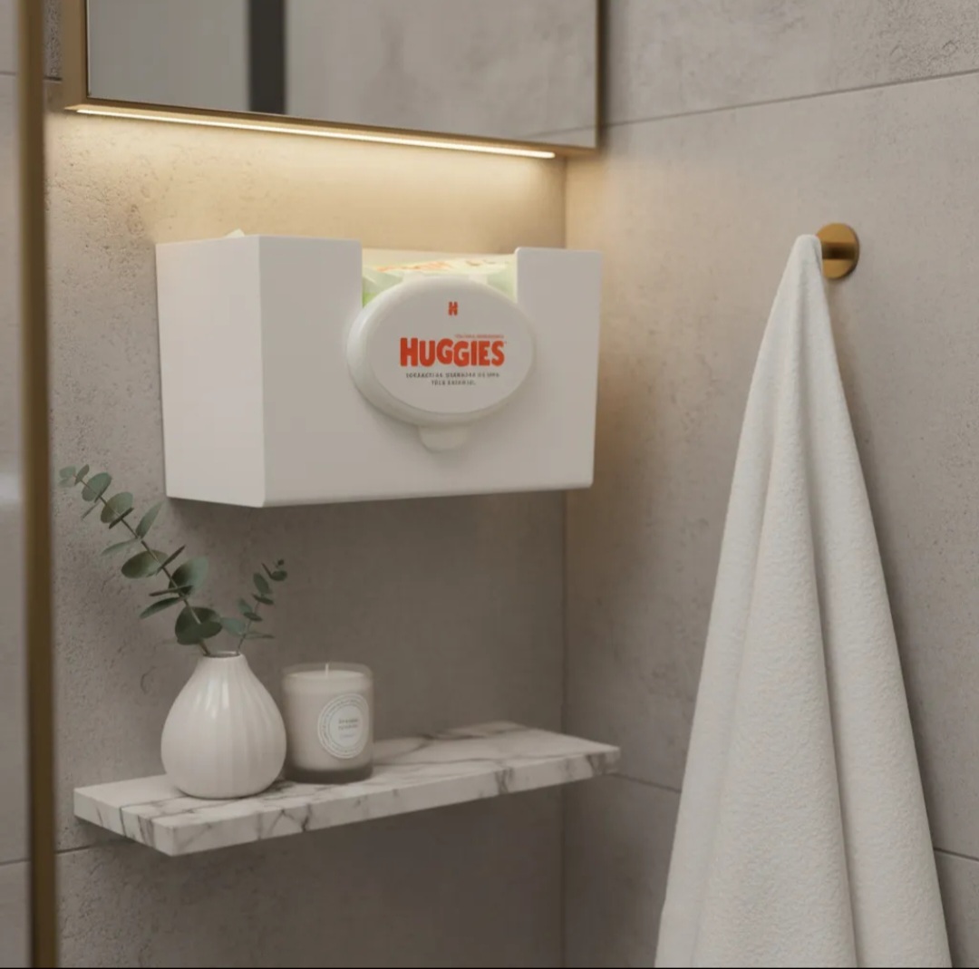Capacidade Interna para pacotes de 100 toalhas umedecidas.