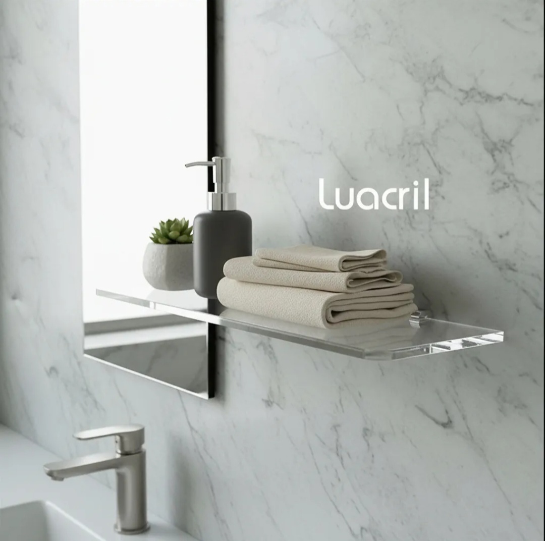 Fabricada em acrílico de primeira qualidade. Acompanha dois suportes cromados (não acompanha buchas ou parafusos).